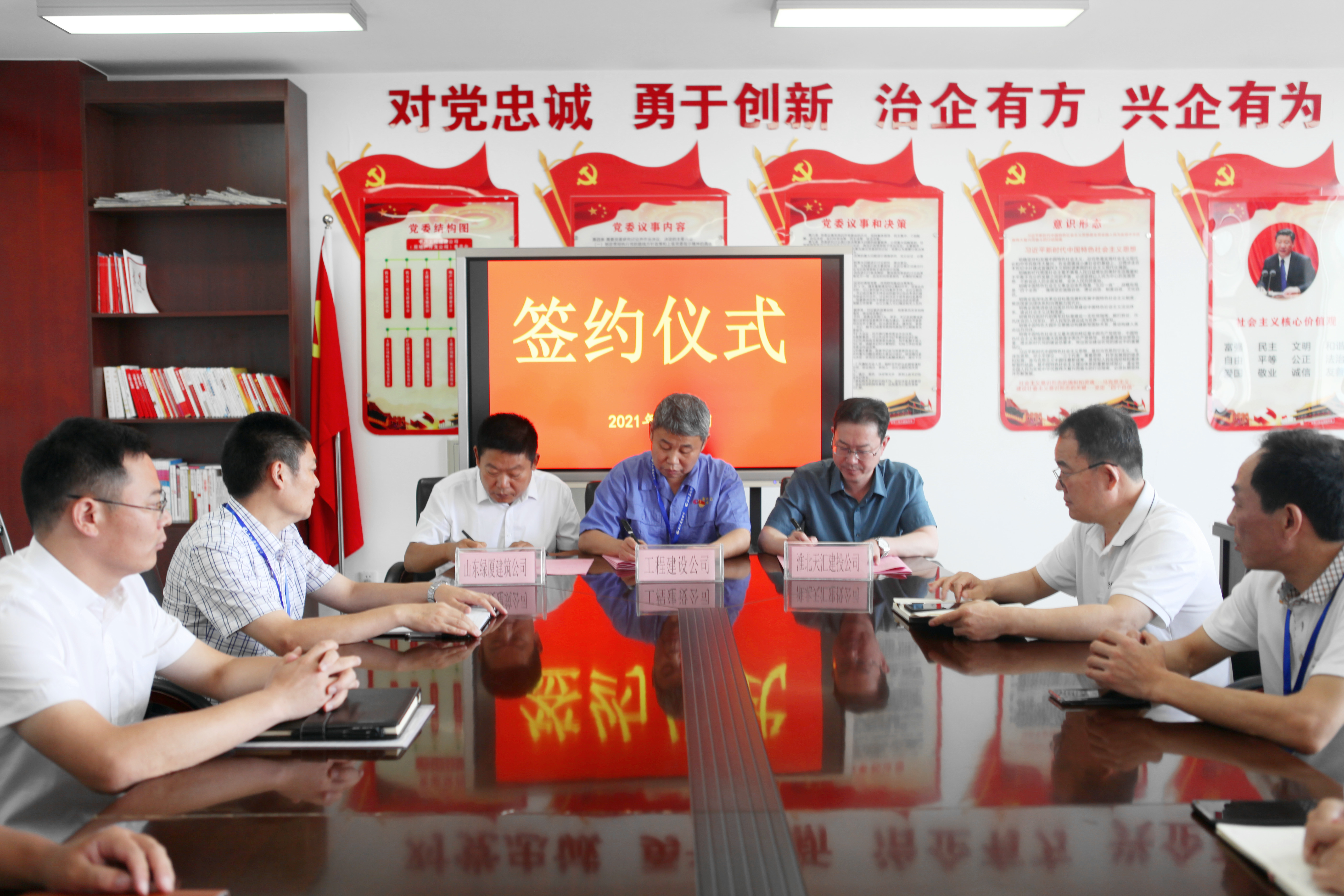 7月30日上午,集團(tuán)公司與淮北礦業(yè)(集團(tuán))工程建設(shè)有限責(zé)任公司、山東綠廈建筑科技有限公司就合資成立新公司簽署《投資合作意向書》,集團(tuán)公司董事長李飛出席此次簽約儀式。